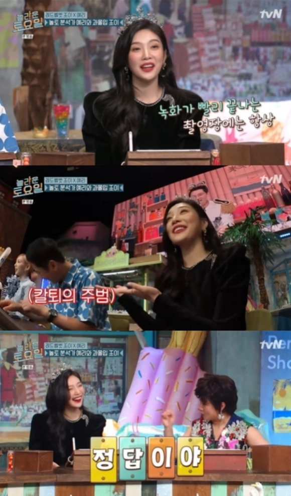 14일 방송된 tvN '놀라운 토요일'에는 그룹 레드벨벳 조이, 예리가 게스트로 출연했다.