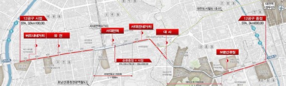 대전도시철도 2호선 12공구 본격 착공대전 도시철도 2호선 12공구가 착공에 들어간다. 12공구는 중구 유천동(버드내아파트)에서 문창동(보문교)까지 총연장 4.678㎞ 구간으로 정거장 6개소가 설치된다. 이곳은 특히 서대전육교와 테미고개 2개소가 지하화되는 핵심 구간으로 전 공구 가운데 시⋯