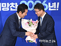 [포토] 정청래 당대표, 한병도 신임 원내대표에게 축하 꽃다발 전달더불어민주당 정청래 대표가 12일 서울 여의도 국회에서 열린 최고위원회의에서 한병도 신임 원내대표에게 꽃다발을 전달한 뒤 기념 촬영하고 있다.더불어민주당 정청래 대표가 12일 서울 여의도 국회에서 열린 최고위원회의⋯