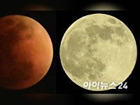 [포토] 36년 만 정월대보름 '블러드 문'⋯우주의 신비로움3일 저녁 경기도 고양시 하늘 위로 '개기월식' 붉은 빛 보름달이 떠오르고 있다. 오른쪽은 지난해 11월 밤하늘에 떠오른 '슈퍼문'의 모습.개기월식은 지구와 달, 그리고 태양이 일직선상에 놓이면서 달이 지구의 본그림자에 완전⋯