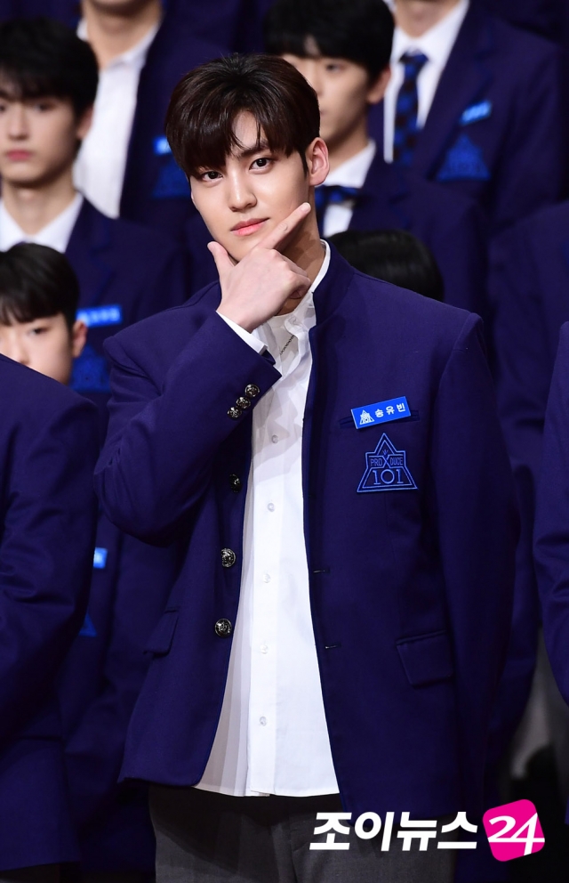[조이뉴스24 정소희 기자] 30일 오후 서울 영등포구 여의도동 63컨벤션센터에서 열린 Mnet '프로듀스X101'(안준영 연출) 제작발표회에서 뮤직웍스 연습생 송유빈이 포토타임을 갖고 있다.