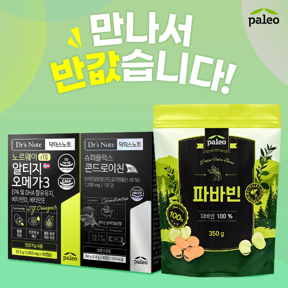 팔레오는 공식 홈페이지에 신규 가입하는 회원에게 노르웨이 알티지 오메가3 제품에 적용 가능한 50% 할인 쿠폰을 제공하는 프로모션을 진행해왔는데, 이번 이벤트에서는 노르웨이 오메가 제품외에 닥터스노트 콘드로이친 맥스 1200과 팔레오 파바빈의 2종을 추가한다.