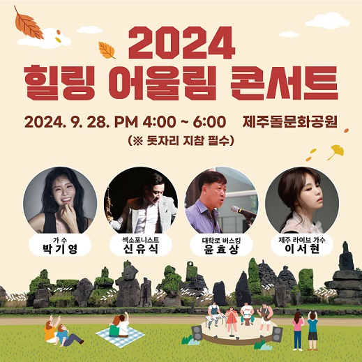 김동희 돌문화공원관리소장은 “제주돌문화공원을 찾는 모든 이들이 가을의 풍요로운 자연을 느끼며 음악으로 힐링할 수 있는 특별한 시간을 보내길 바란다”고 말했다.
