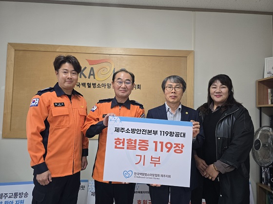 이번 행사에서는 단체 헌혈을 통해 모은 총 119장의 헌혈증은 (사)한국백혈병소아암협회 제주도지회에 기부됐다.
