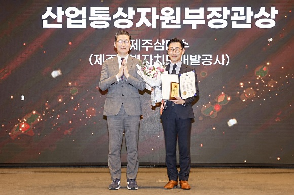 [조이뉴스24 배정화 기자] 제주개발공사(사장 백경훈)는 제주삼다수가 지난 21일 열린 '2024 CSR 필름 페스티벌 어워드'에서 사회적 가치 부문 산업통상부장관상을 수상했다고 밝혔다.