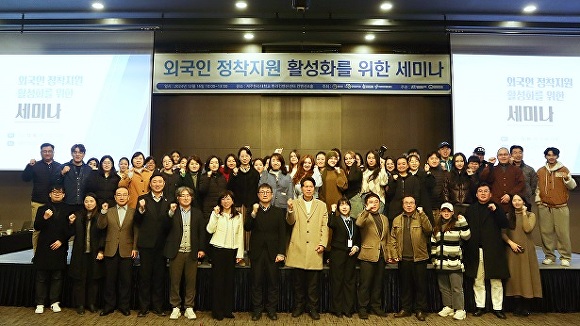 제주테크노파크(원장 문용석, JTP)는 지난 16일 제주한라대학교 한라컨벤션홀에서 외국인 정착지원 활성화를 위한 세미나를 개최했다.
