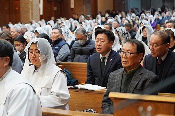 오 지사는 24일 오후 8시 천주교 제주교구 주교좌 중앙성당을 방문해 미사에 참석했다.
