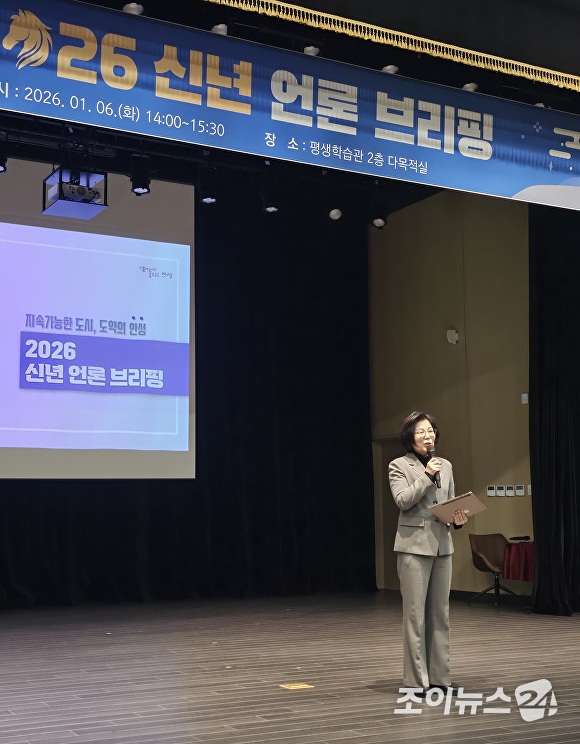 [조이뉴스24 양찬희 기자] 김보라 경기도 안성시장은 지난 6일 안성시 평생학습관에서 열린 신년 언론브리핑에서 2026년 안성시 시정 운영 방향을 제시하며 시민 삶의 변화를 중심에 둔 정책 추진 의지를 밝혔다.