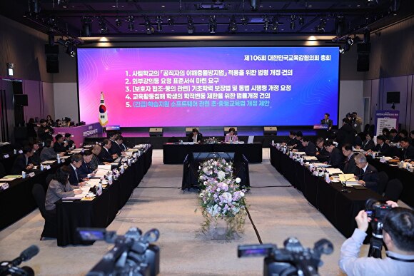 임태희 경기도교육감은 “행정통합 논의와 교육재정 여건, 교원 정원 문제 등 교육을 둘러싼 환경이 그 어느 때보다 엄중하다”며 “이번 총회가 교육의 본질 회복과 교육자치 강화를 위한 교육개혁 방향을 함께 고민하는 계기가 되길 바란다”고 했다.
