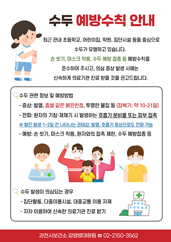 시 보건소는 수두 환자 발생 시 역학조사를 실시하고 어린이집·학교·학원 등을 대상으로 예방수칙 준수 안내 등 선제적인 관리 조치를 하고 있다.
