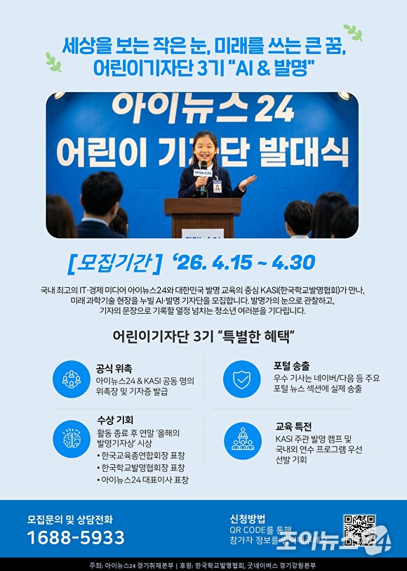 아이뉴스24 경기취재본부·한국학교발명협회·굿네이버스 경기강원권역본부가 공동으로 추진한다.