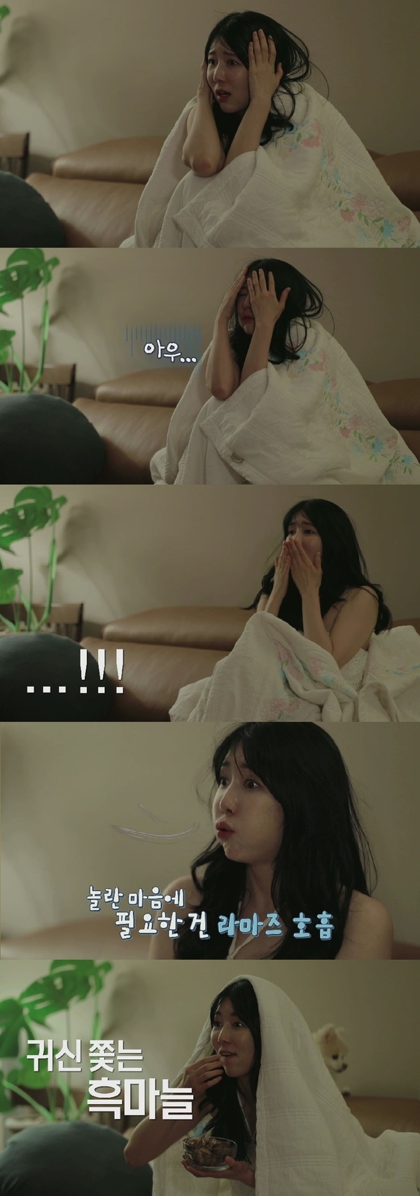 이에 사유리는 "흑마늘이 귀신을 쫓는다더라. 마음을 진정해야 하니까 필요하다"고 설명했다. 뒤이어 두 손으로 얼굴을 감싸 쥔 것도 잠시, 귀신 쫓는 특효약 흑마늘에 라마즈 호흡법, 십자가까지 품에 꼭 쥔 채 공포영화로 놀란 가슴을 진정시켜 폭소를 자아냈다.