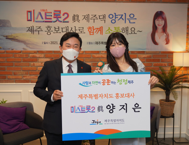 원 지사는 "'미스트롯2' 우승과 제주도 홍보대사로 위촉된 것을 진심으로 축하드린다"며 "앞으로 홍보대사로서 제주 브랜드가치를 높이는 데 힘써달라"고 말했다.