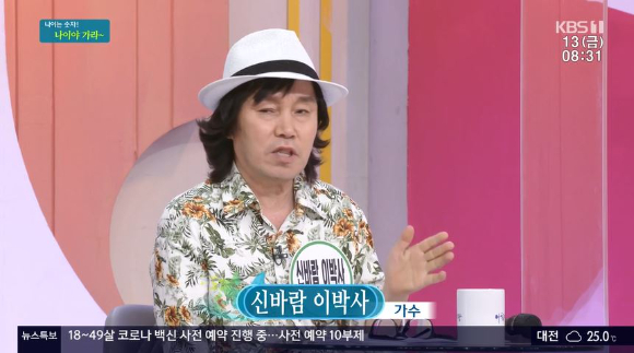 13일 오전 방송된 KBS 1TV '아침마당' 생생토크 만약 나라면에 출연한 신바람 이박사는 "1995년 일본에 가서 5년 전속으로 활동했다. 1년을 남기고 왼쪽 다리를 다쳤다. 당시 노래 한곡에 1천만씩 받던 시기다"라고 했다.