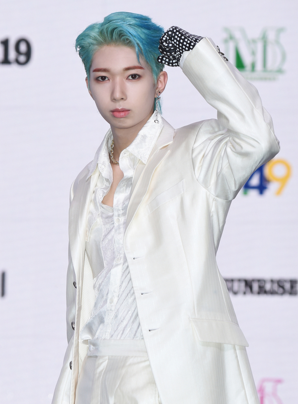 그룹 T1419(티일사일구) 레오가 23일 온라인으로 진행된 싱글 3집 'BEFORE SUNRISE Part. 3'(비포 선라이즈 파트 3) 미디어 쇼케이스에 참석해 포즈를 취하고 있다. [사진=MLD엔터테인먼트]