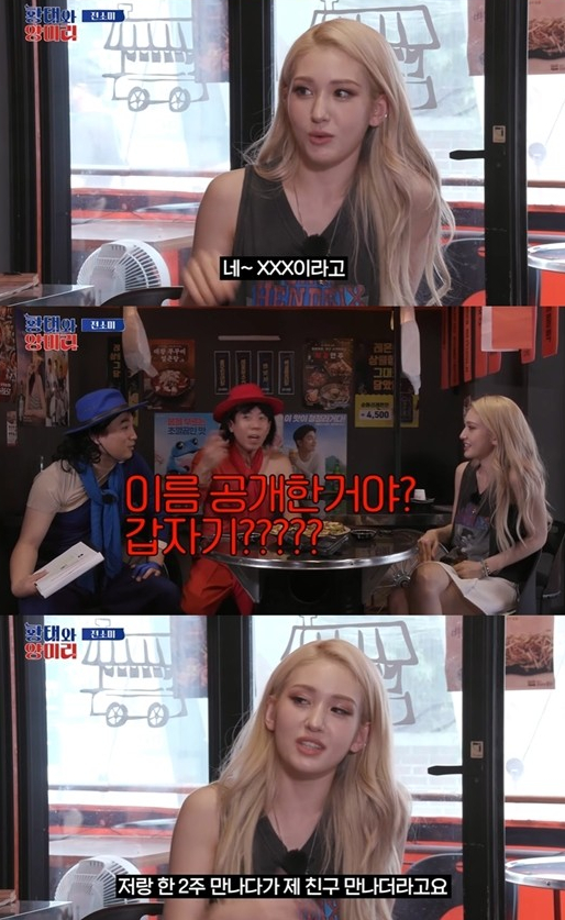 놀란 양세찬은 "이름 공개한 거냐. 갑자기?"라고 당황해했고 전소미는 "저랑 한 2주 만나다가 제 친구를 만나더라. 개XX"라고 욕을 내뱉어 폭소를 자아냈다.